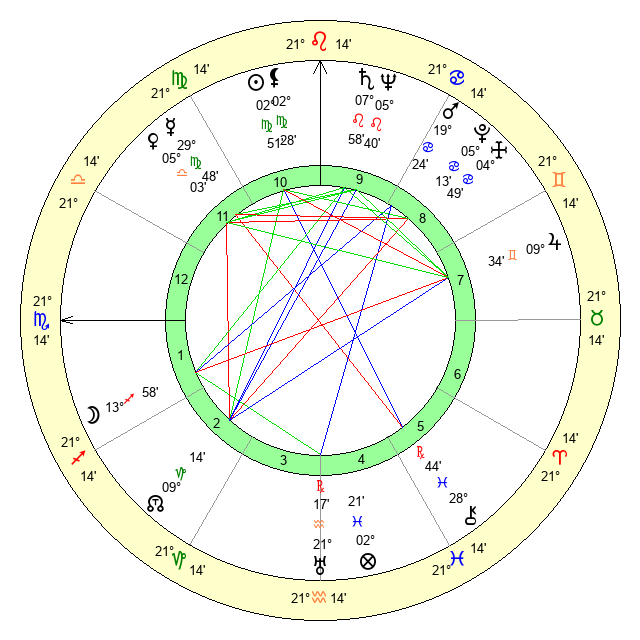 | Moon | 13 Sagittarius 56 | 13 Libra 44 | 29 Scorpio 21 |