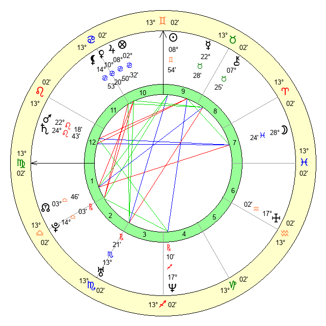 | Neptune | 17 Sagittarius 10 | 1 Aries 50 | 15 Sagittarius 59 |