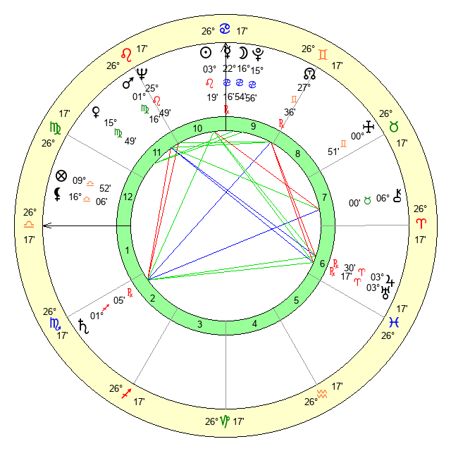 | Mars | 1 Virgo 17 | 23 Virgo 28 | 4 Scorpio 59 |