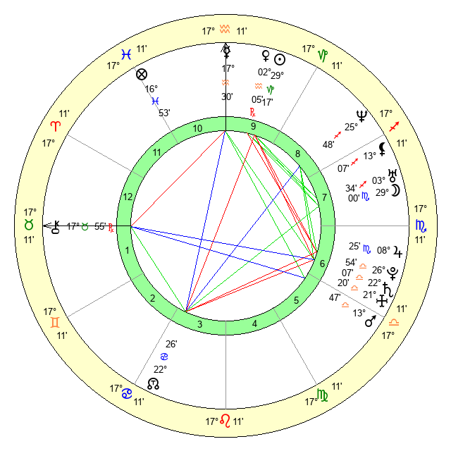 | Moon | 28 Scorpio 59 | 6 Libra 37 | 23 Gemini 10 |