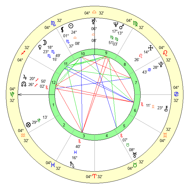 | Mars | 13 Virgo 3 | 17 Scorpio 23 | 4 Scorpio 43 |