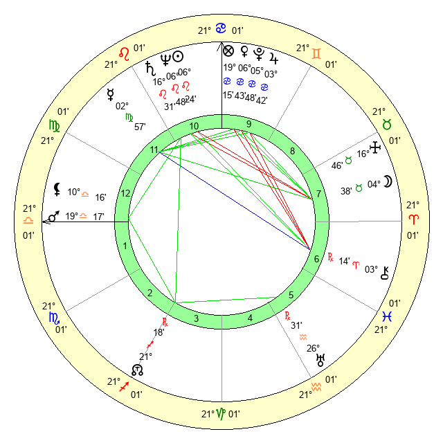 | Venus | 6 Cancer 44 | 29 Gemini 8 | 18 Scorpio 51 |