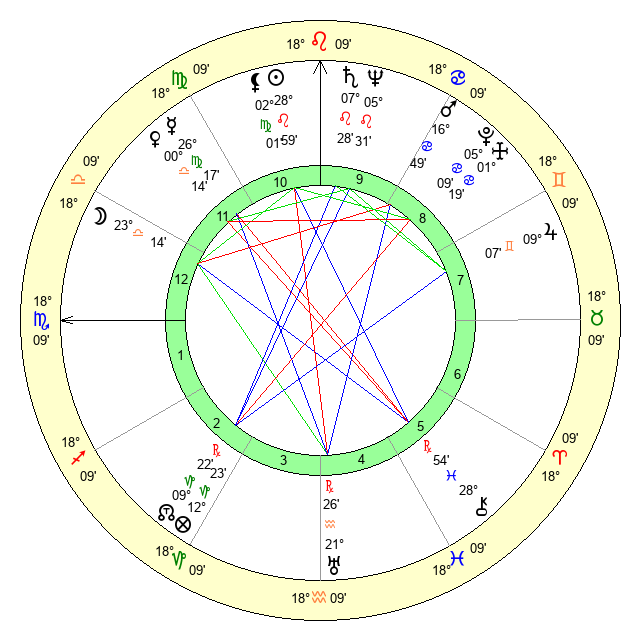 | Moon | 23 Libra 16 | 23 Leo 4 | 9 Libra 6 |