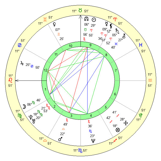 | Moon | 6 Virgo 53 | 26 Capricorn 25 | 25 Libra 36 |