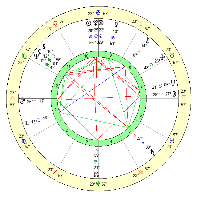 | Sun | 28 Cancer 56 | 0 Leo 8 | 26 Libra 22 |
