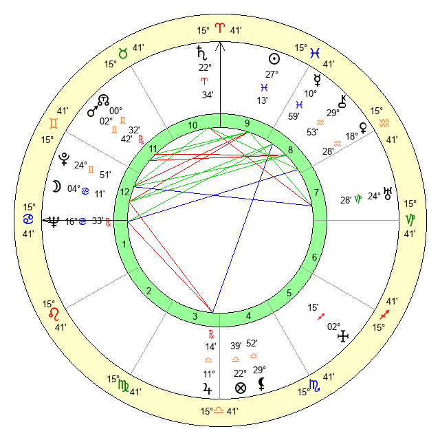 | Neptune | 16 Cancer 34 | 29 Pisces 33 | 19 Cancer 2 |