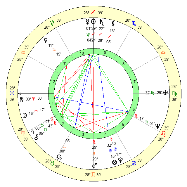 | Moon | 16 Aries 24 | 14 Virgo 30 | 2 Scorpio 5 |