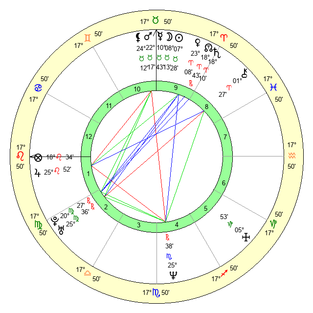 | Moon | 8 Taurus 6 | 6 Taurus 15 | 7 Gemini 41 |
