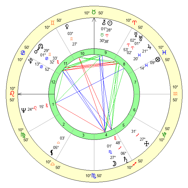 | Sun | 28 Aries 38 | 29 Aries 53 | 2 Leo 42 |