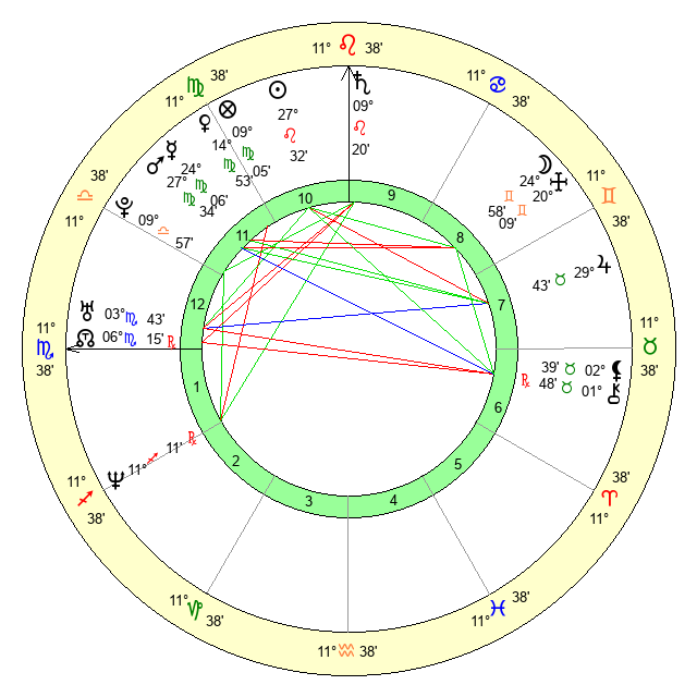| Mercury | 24 Virgo 7 | 9 Leo 10 | 27 Virgo 25 |