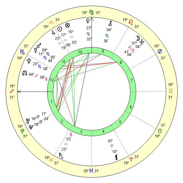 | Venus | 23 Virgo 8 | 25 Virgo 45 | 2 Scorpio 58 |