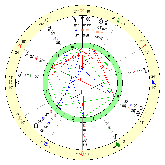 | Moon | 0 Scorpio 27 | 18 Sagittarius 48 | 12 Gemini 4 |