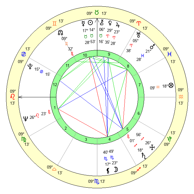 | Moon | 23 Scorpio 48 | 28 Leo 11 | 13 Gemini 17 |