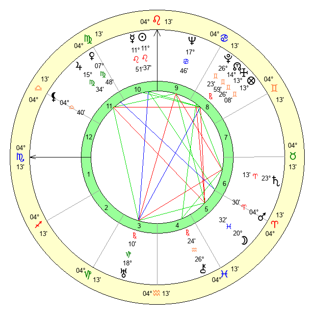 | Mercury | 11 Leo 53 | 6 Leo 26 | 3 Sagittarius 18 |