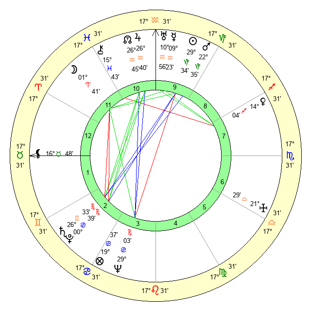| Jupiter | 26 Aquarius 26 | 11 Gemini 38 | 21 Pisces 17 |