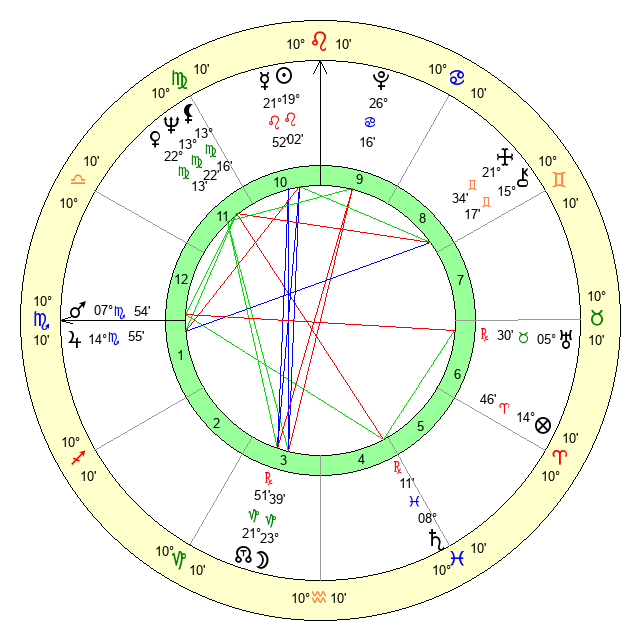 | Sun | 19 Leo 2 | 20 Leo 14 | 17 Scorpio 22 |