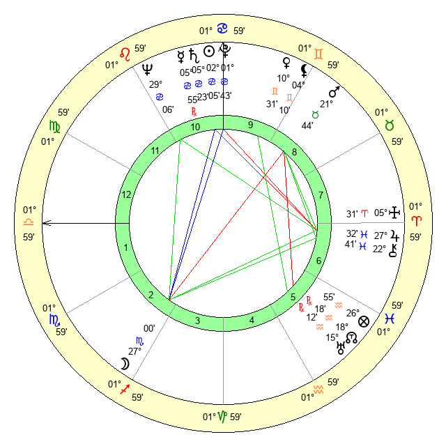 | Moon | 27 Scorpio 4 | 23 Gemini 25 | 9 Sagittarius 58 |
