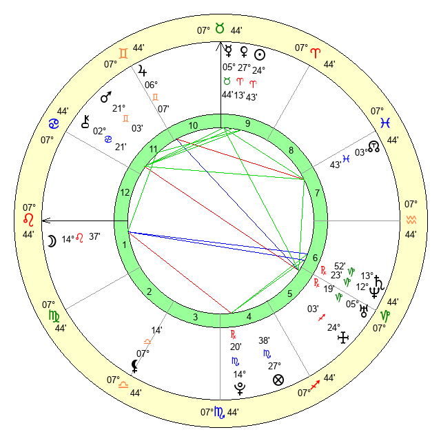| Moon | 14 Leo 40 | 13 Scorpio 18 | 29 Scorpio 5 |