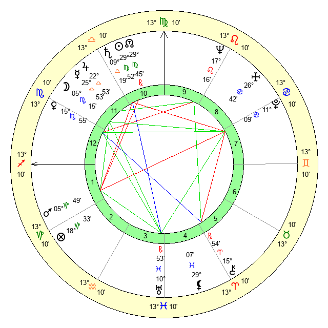| Sun | 29 Virgo 52 | 0 Libra 55 | 13 Capricorn 20 |