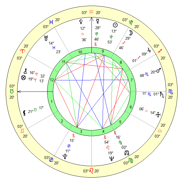 | Venus | 12 Aquarius 37 | 2 Pisces 29 | 10 Gemini 41 |