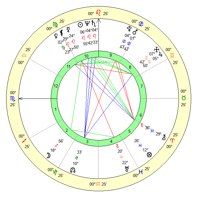 | Mercury | 24 Leo 51 | 9 Leo 57 | 29 Scorpio 43 |
