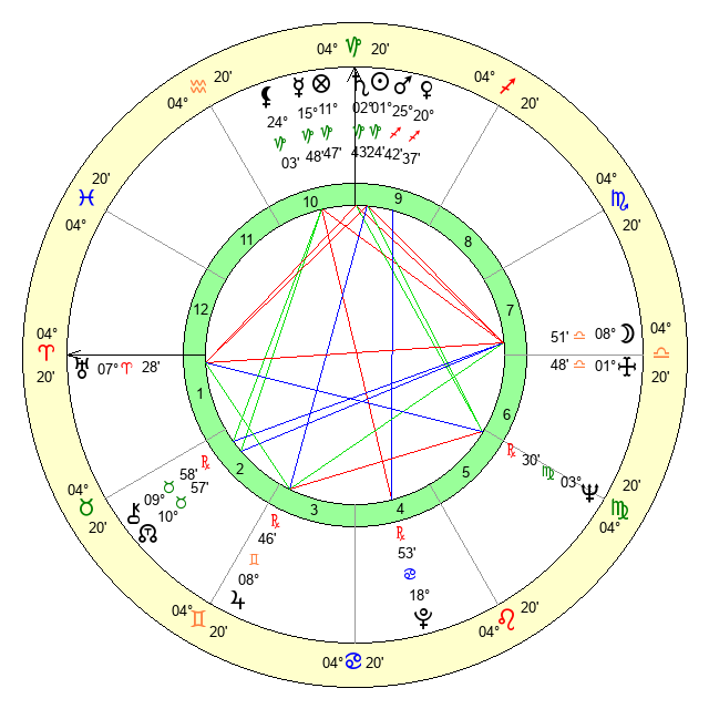 | Neptune | 3 Virgo 30 | 27 Pisces 12 | 1 Virgo 18 |
