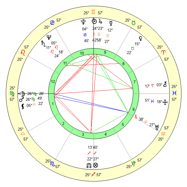 | Sun | 24 Gemini 42 | 25 Gemini 48 | 7 Libra 41 |