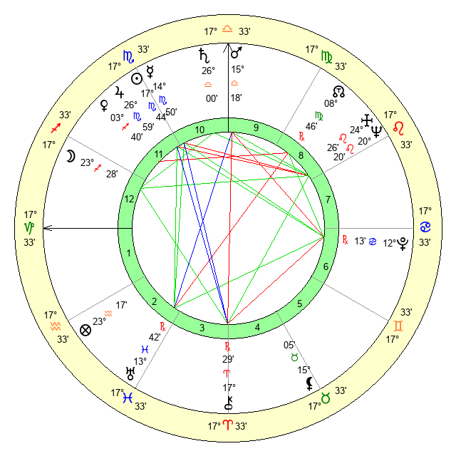 | Saturn | 26 Libra 34 | 25 Pisces 18 | 2 Scorpio 52 |
