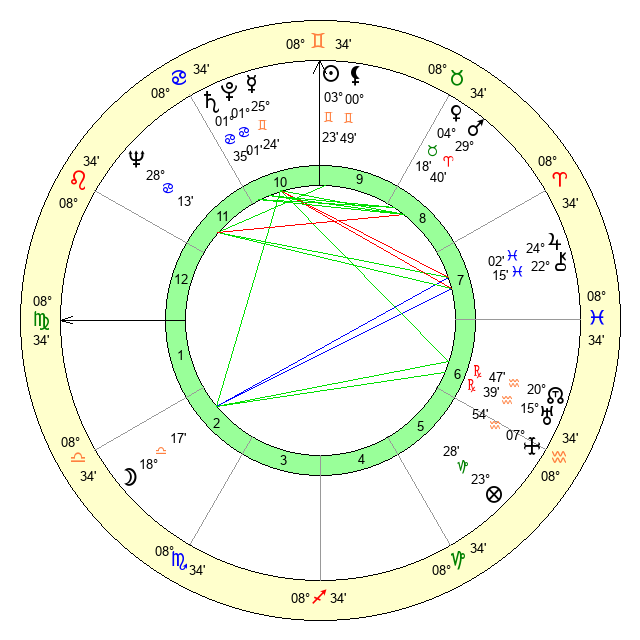 | Sun | 3 Gemini 23 | 4 Gemini 44 | 18 Virgo 50 |