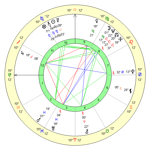 | Moon | 1 Virgo 16 | 24 Scorpio 27 | 23 Taurus 45 |