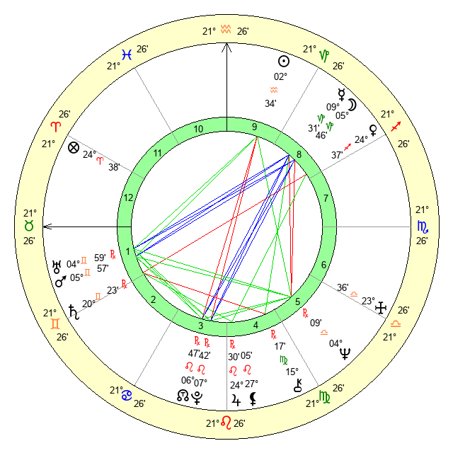 | Mars | 5 Gemini 57 | 23 Cancer 15 | 8 Cancer 25 |