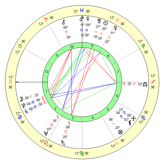| Moon | 28 Gemini 30 | 29 Cancer 57 | 9 Taurus 22 |
