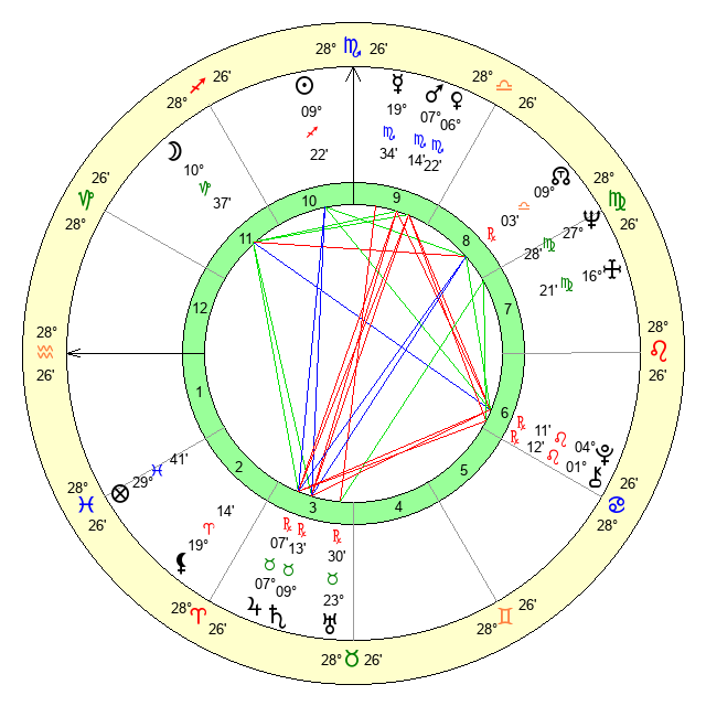 | Venus | 6 Scorpio 22 | 1 Sagittarius 5 | 22 Aquarius 14 |