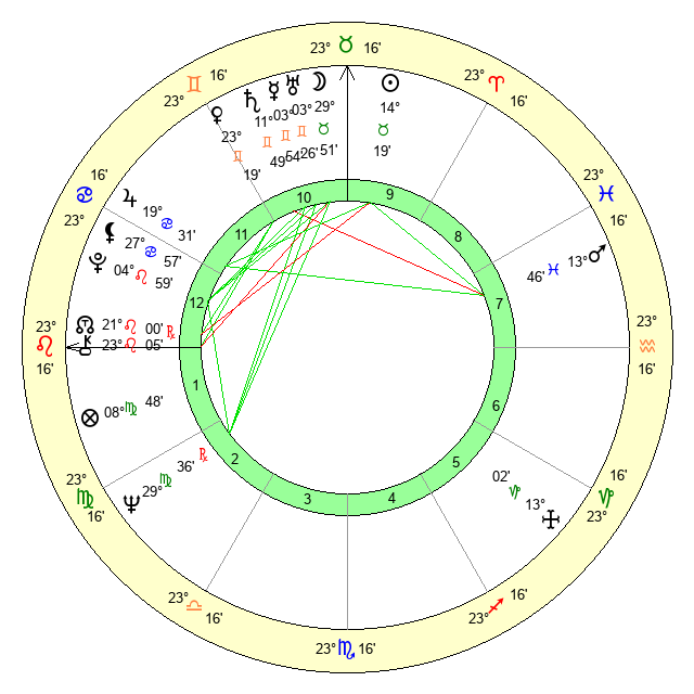 | Mars | 13 Pisces 47 | 7 Leo 47 | 12 Taurus 39 |
