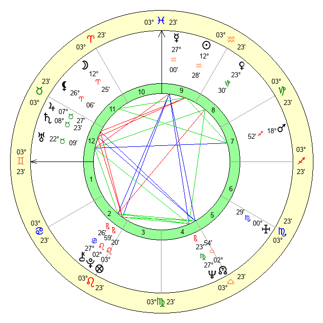 | Neptune | 27 Virgo 23 | 27 Pisces 59 | 25 Virgo 20 |
