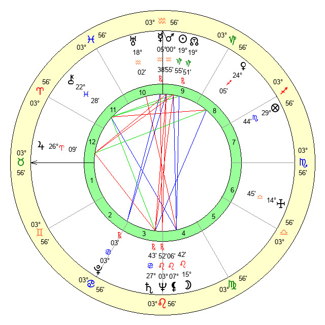 | Mars | 0 Aquarius 55 | 28 Cancer 22 | 25 Aries 19 |
