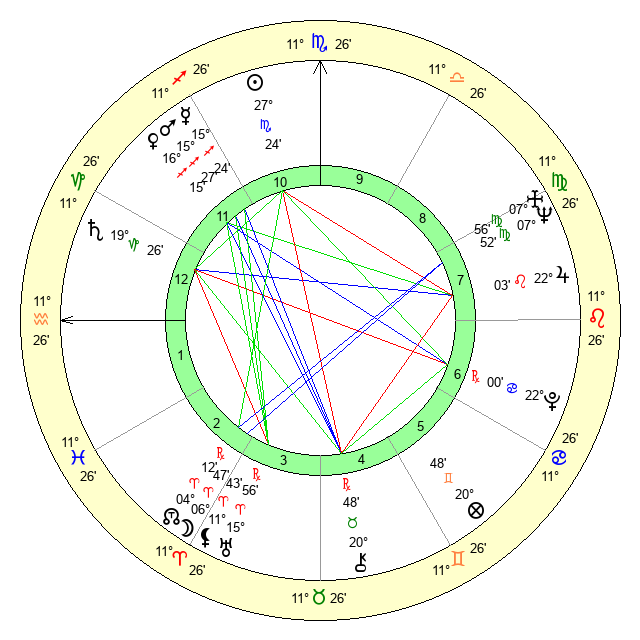 | Neptune | 7 Virgo 52 | 27 Pisces 12 | 6 Virgo 44 |
