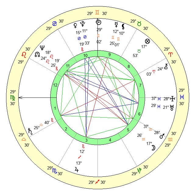 | Sun | 29 Gemini 3 | 29 Gemini 37 | 6 Libra 16 |