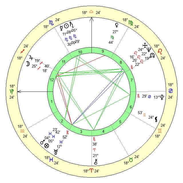 | Venus | 27 Virgo 45 | 22 Libra 12 | 2 Aquarius 10 |