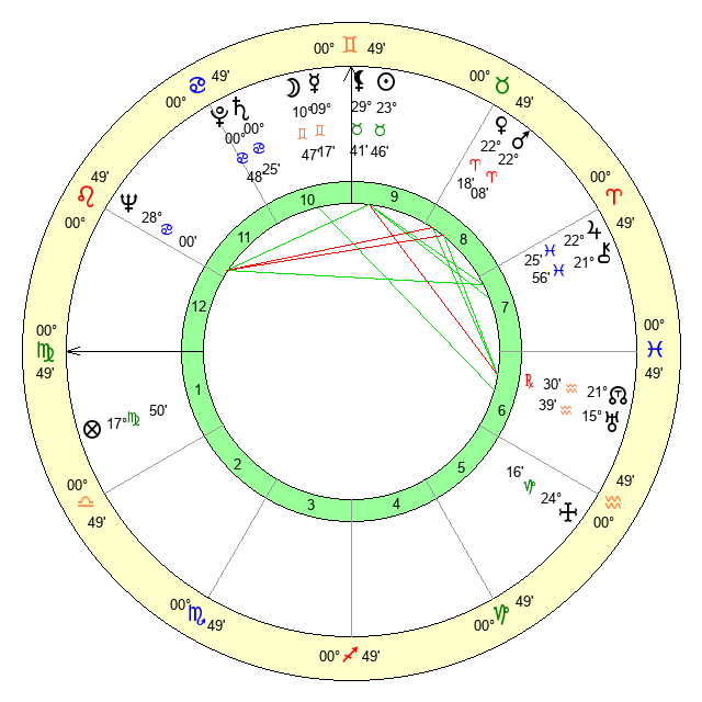 | Moon | 10 Gemini 47 | 28 Sagittarius 30 | 21 Gemini 0 |
