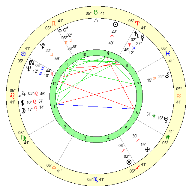 | Sun | 20 Aries 50 | 21 Aries 29 | 13 Leo 14 |