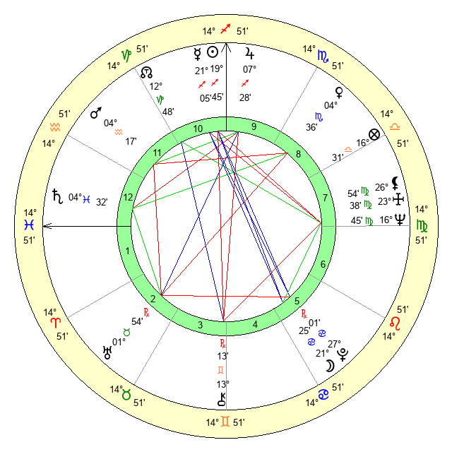 | Neptune | 16 Virgo 45 | 29 Pisces 22 | 15 Virgo 14 |