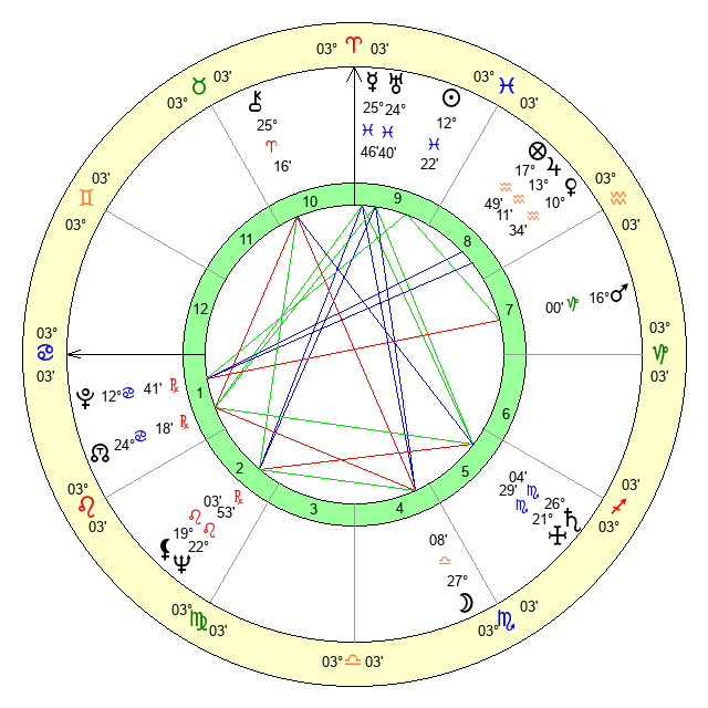 | Mars | 16 Capricorn 2 | 17 Cancer 22 | 27 Pisces 1 |