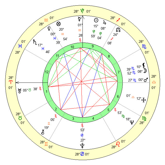 | Neptune | 18 Virgo 52 | 29 Pisces 34 | 16 Virgo 50 |