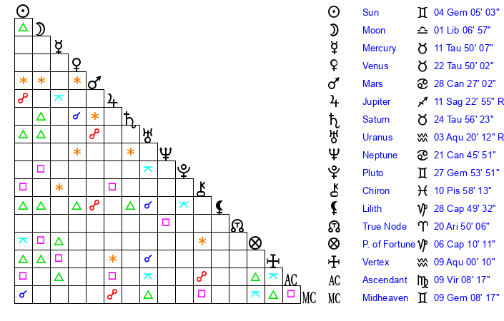 Pluto | 27 Gemini 54 | 3 Aquarius 42 | 0 Cancer 2 |