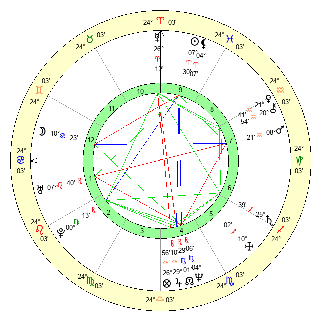 | Neptune | 4 Scorpio 5 | 29 Pisces 56 | 2 Scorpio 24 |