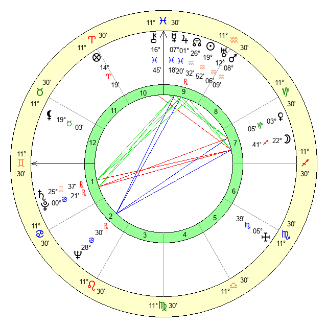 | Jupiter | 1 Pisces 7 | 11 Gemini 19 | 24 Pisces 31 |