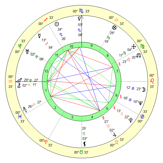 | Saturn | 26 Aquarius 55 | 25 Pisces 9 | 8 Pisces 19 |