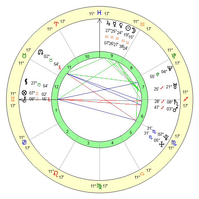 | Moon | 15 Aquarius 25 | 3 Cancer 23 | 9 Cancer 51 |