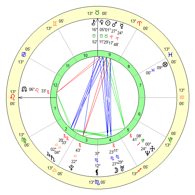 | Jupiter | 2 Libra 9 | 19 Gemini 34 | 0 Libra 23 |